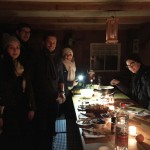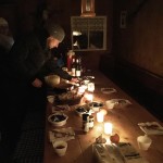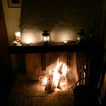 Aber Licht gab es in Form von Kerzen, das Caquelon wurde mittels Brennpaste beheizt, Wasser hatten wir in Form von Mineral und in Wärmekrügen dabei und im Kamin loderte ein Feuer.